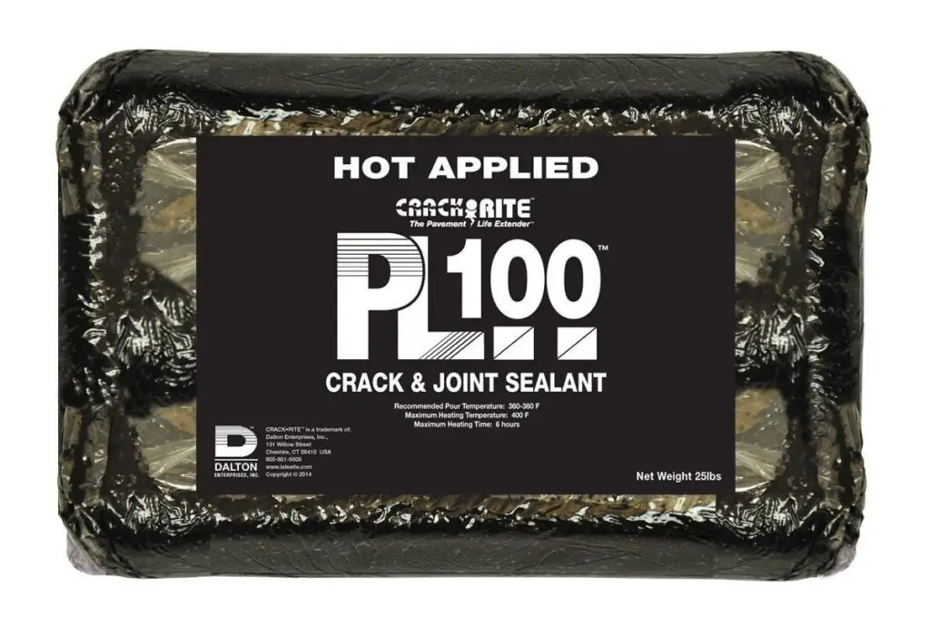 CRACK-RITE™ PL-100 is an economical, single component hot applied crack and joint sealing compound. PL-100 is our hardest rubber offered, with the highest content of crumb rubber for anti-sag properties. PL-100 is ideal for melters with wands. Not recommended for pour pot applications.- 25 lbs.
