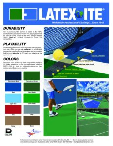 All purpose color, high solid acrylic latex concentrate. It is fortified with fine mineral fillers and acrylic resins. Color-fast pigments with an advance latex produce a richer, better yielding, longer lasting, in-depth color. Available stocked concentrate colors: Tournament Blue, Tournament Green, Dark Green, Light Green, Blue, Light Blue, Red, Gray, Beige, Brown. Custom colors available and speed specifications sent with order (i.e. medium-slow, medium, medium-fast). ITF Rated.